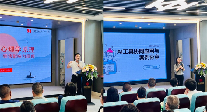 在企业管理内训环节,来自湖北万方国际经贸合作有限公司的刘翔和张娅婷老师,通过传授8大心理学法则及24种实战工具,为企业低成本拓客提供了有效方法。DeepSeek多功能运用讲解,帮助学员快速掌握AI工具与管理融合技巧,降低企业成本。